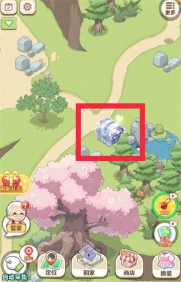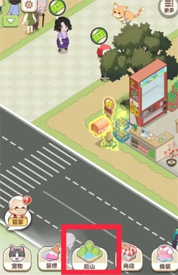 点击后山,找到宝箱后点击它,就能随机开出钻石、爱心、券之类的物品。
