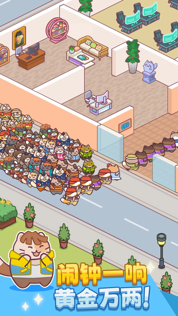 《我是搬砖之王》是一款趣味十足的猫咪打工模拟游戏。在游戏中,你可以不断招募各类猫咪职工加入公司,以此创造更高收益,进而持续扩张公司规模,积累更多财富。每只猫咪都十分可爱,你只需花费固定资金就能将它们招募进来。