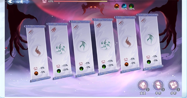 心魔是获取异火养成资源的重要渠道,画卷消除完成后,记得还有3场战斗要参与。