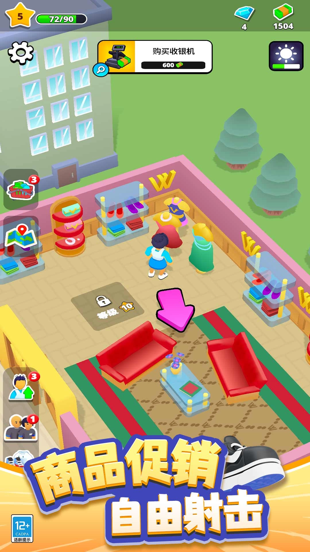 迷你时装城是一款趣味十足的模拟经营游戏,玩家在游戏里能够打造专属的时装商城,自由布置服装生产设备,把制作完成的服装上架展示,供顾客随意试穿选购。玩家需要运用经营策略,持续增加客流量,迅速提高商城收益,及时升级各类设备,招募更多员工,全方位管理商城运营。