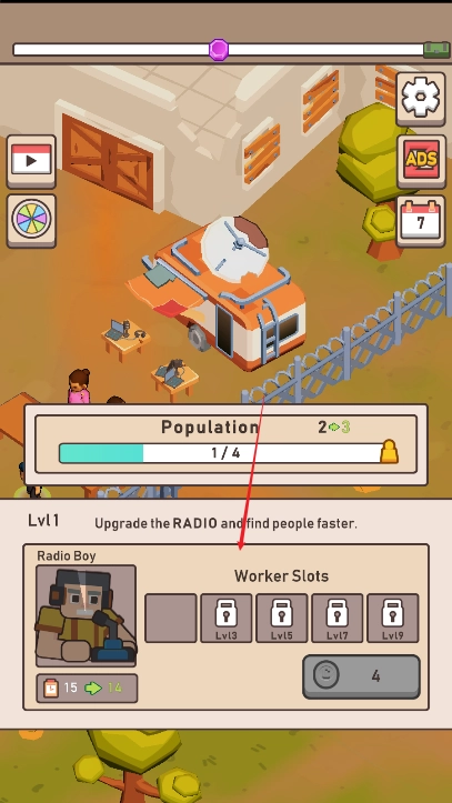 在这款融合幸存者管理与基地建设的游戏里,玩家将以群体领袖的身份,统筹分配幸存者的各项工作。一方面,需指派部分幸存者外出搜寻食物、采集木材等基础资源;另一方面,安排另一部分幸存者投入基地设施的建造与升级工作。当资源储备达到一定规模后,可对各类工作站进行升级改造,以此提升生产效率,进而吸引更多流离的幸存者加入团队。而招募新成员的关键,正是运用手中的木材与食品资源——新成员的加入将壮大劳动力队伍,为基地后续的建设与发展注入更强劲的动力。