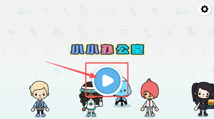 点击那个蓝色圆圈形状的播放按钮,就能启动小小办公室游戏,与五个卡通角色一同进行互动。