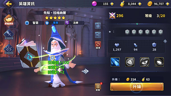 通过挂机放置获取的资源能够用于提升英雄等级。