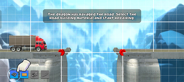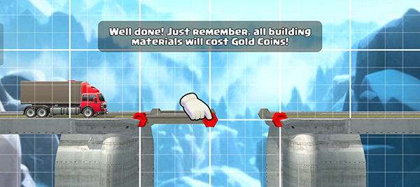 完成选择后,用手指从桥梁的一端把建筑材料拖到桥的中间位置,接着再从中间将材料拖至桥梁的另一端。