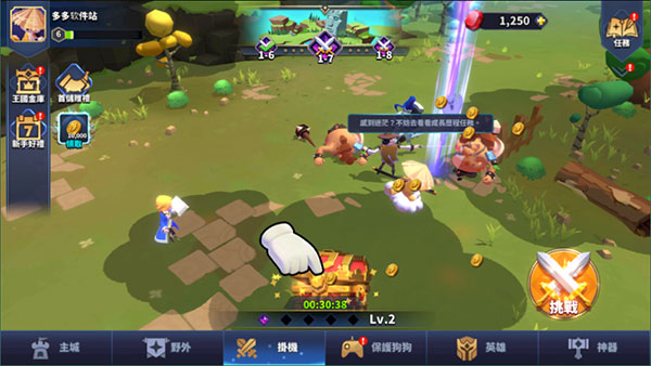 点击右下角的“挑战”按钮,即可选择关卡开启闯关;在正式闯关前,还能对出战阵容进行调整。
