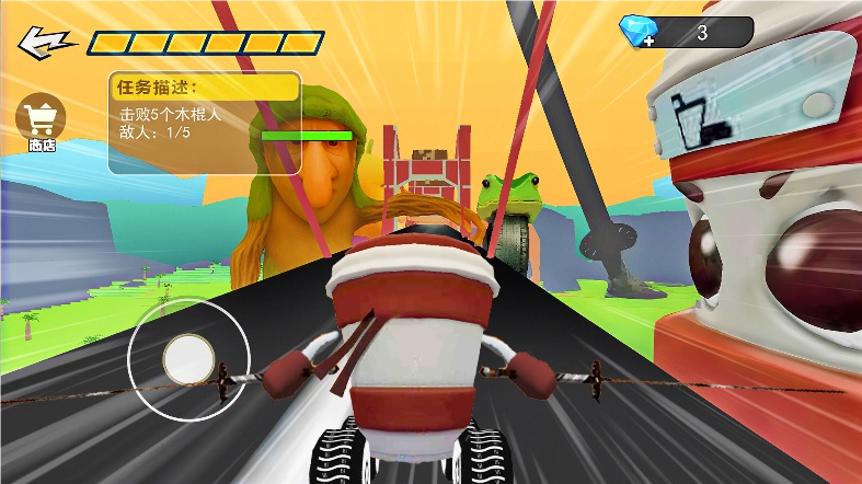 在关卡中驾驶车辆,规划合适路线来躲避障碍,或是精准撞击守卫,以此完成击败敌人的任务。