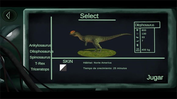 点击play后能够挑选不同的恐龙,共有五种不同的恐龙可供选择。