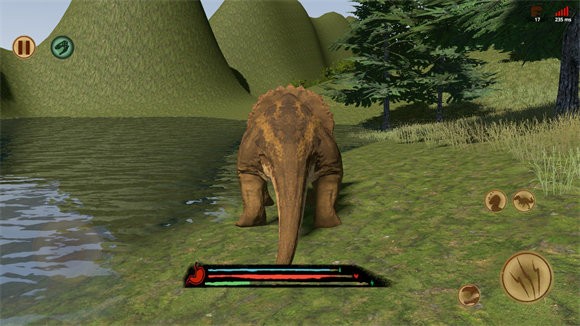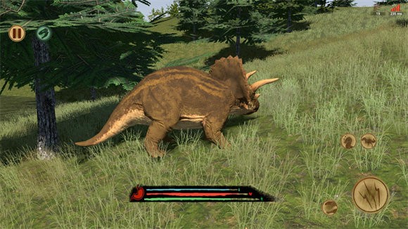 正式开始后,屏幕左侧用于控制恐龙移动,右侧则设有攻击、奔跑、休息和喊叫的按钮。