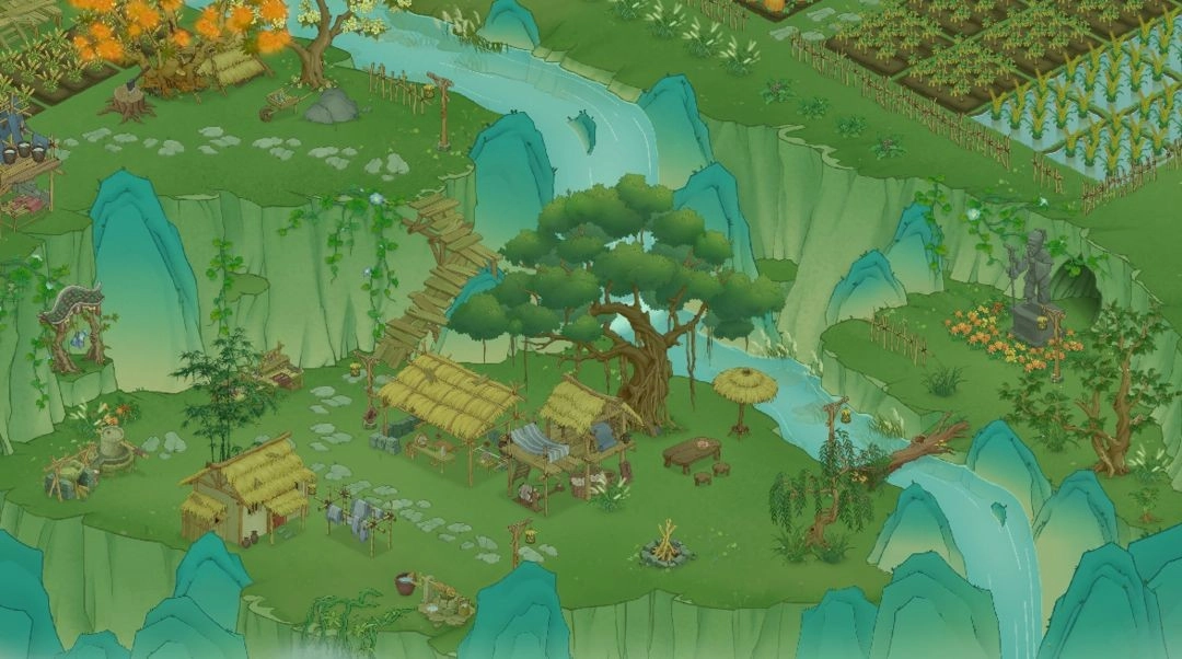 《桃源记2》的场景主要包含桃源山谷主场景大地图、森林地图与陶先生家地图这几部分,整体采用国画风格,尽显中国传统艺术瑰宝的独特魅力。
