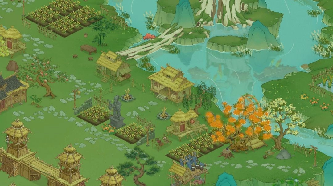 它运用了更富表现力的45°斜视角,得以展现出更广阔、更多元的地图场景。《桃源记2》里的山谷区域面积,比《桃源记1》的要多出四倍有余。