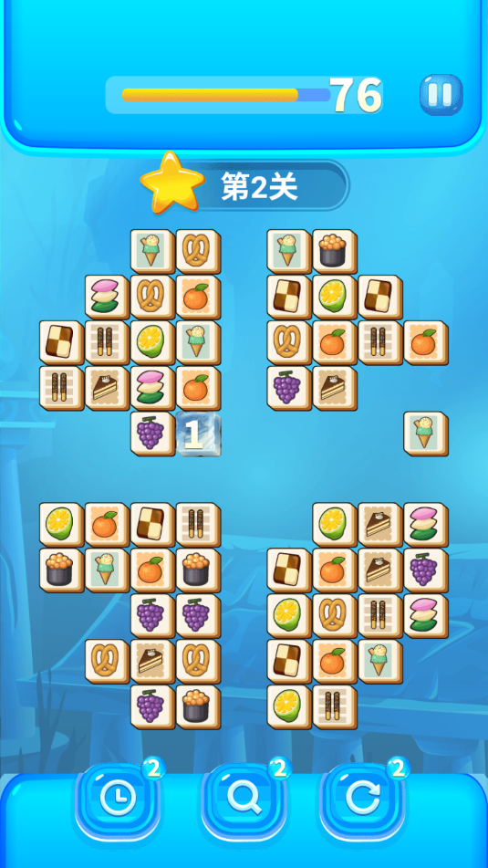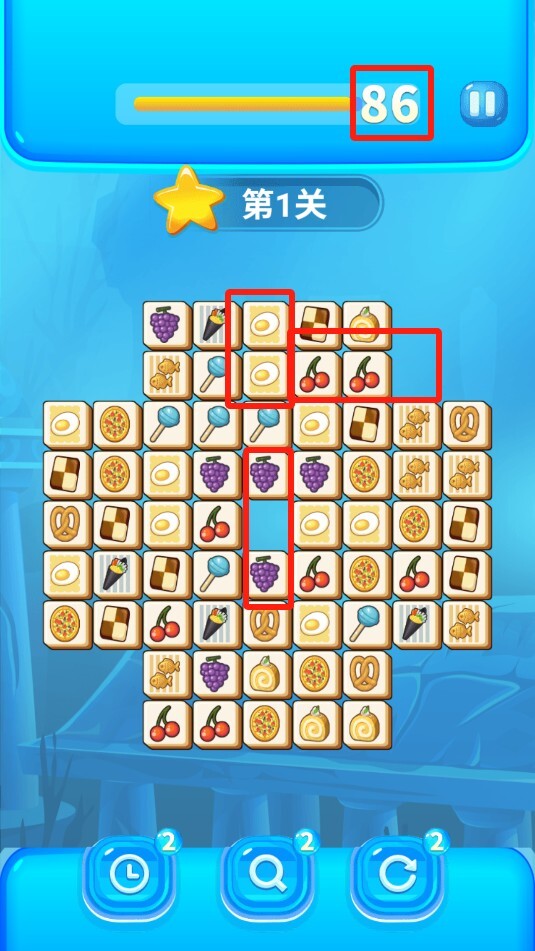 在关卡里,你需要点击两个相同的食品来完成消除操作,建议先点击离你较近的,之后再去消除远处的。