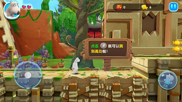 左侧控制移动,点击右侧跳跃按钮就可以跳到高处啦。