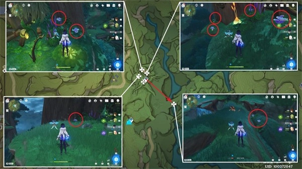 降诸魔山的洞窟大多位于上层平台或藤蔓区域,利用四叶印能够快速收集,总数为6个。