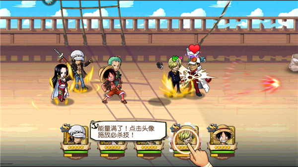 当敌人的血量所剩无几时,我们只需点击角色头像,释放必杀技就能轻松将其击败。