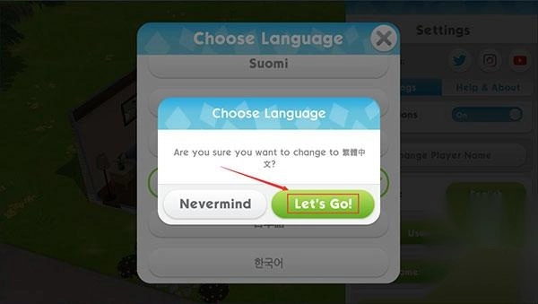 首先要说明的是,设置中文的前提是得先完成游戏里的新手引导,要是没完成的话,设置界面是不会显示出来的。等新手引导结束之后,再点击右侧那个蓝色的三角形箭头就行。