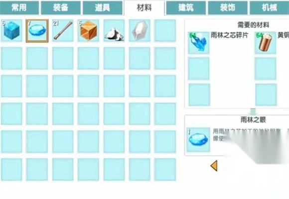 首先砍伐雨林之芯乔木,收集到足够数量后,就能合成雨林之芯碎片。利用这些碎片,玩家可以进一步合成出雨林之眼。