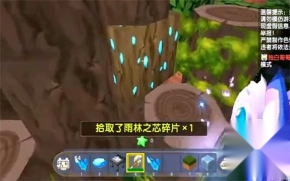 雨林之芯可以通过挖这种发光的木头可以获得。