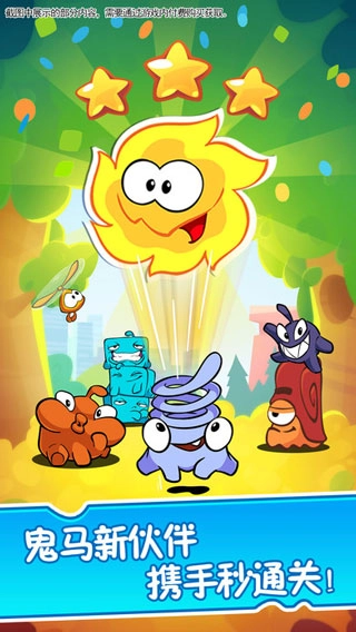 可爱的装扮系统:玩家能在商店选购Om Nom与糖果的酷炫装扮,将它们打造成自己理想中的可爱形象。