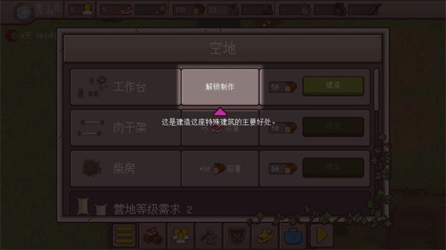 持续升级你的营地,拓展你的家园范围。你储备的食物越充足,能够庇护的幸存者数量就越多。