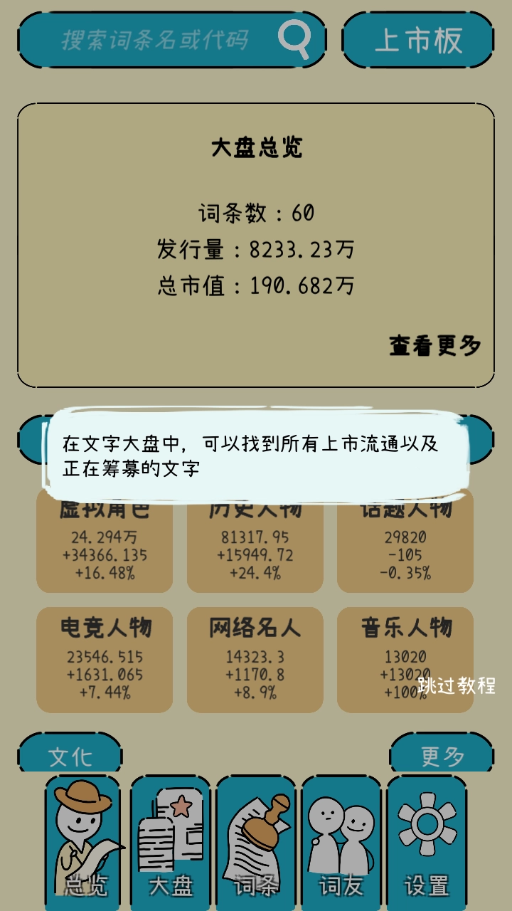 价格波动:股票价格的起伏受诸多因素左右,一方面是玩家之间的交易活动,另一方面也和对文字人气的认知有关。