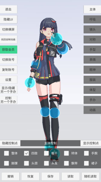 模型调节功能十分详尽丰富,无论是各个部位还是各类动作,都能够进行细致的调节。