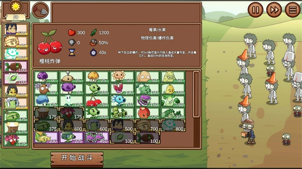 这里有许多植物,其中不少是以火影角色为原型设计的,总共能挑选10个,接着点击下方的开始战斗按钮。