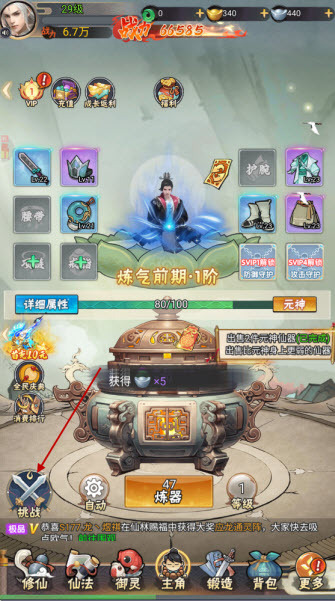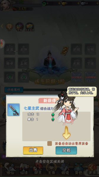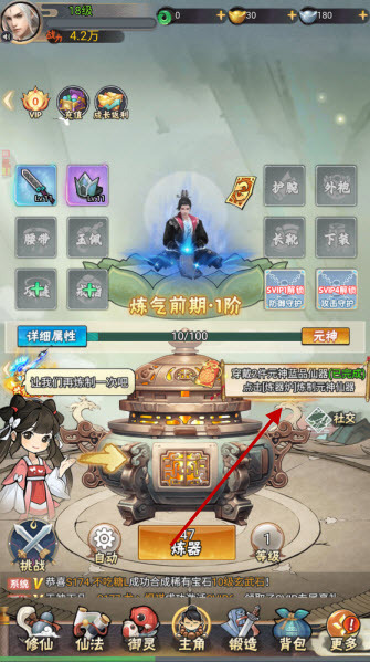 炼制出来的装备点击进行穿戴,可以提升角色属性。