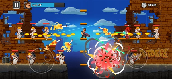 每次的闯关都特别有意思,各种武器都能灵活运用,这样就能不断消灭敌人,过关肯定没问题。