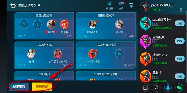 一键选择“快速匹配”,就能加入其他玩家的房间。