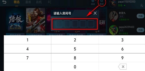 最后还能点击“房间”选项,通过搜索房间号就能进入好友创建的房间,进而联机畅快游玩。