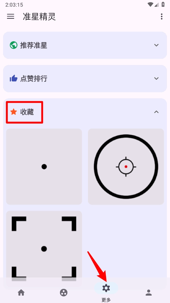 切换到“更多”板块,在收藏栏目里就能看到你收藏的准星样式了。