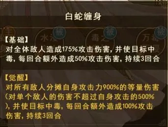 白娘子的职业是法师,掌握着白蛇缠身、毒之掌控、万毒不侵等多项技能。