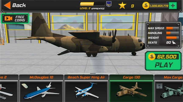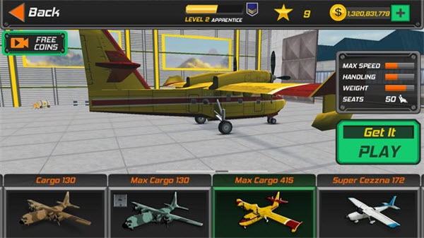 游戏里有各式各样的逼真飞机,玩家能在超大地图上飞行,挑选一架你最爱的飞机,驾驶它冲上云霄,尽情享受完全放松的驾驶体验!