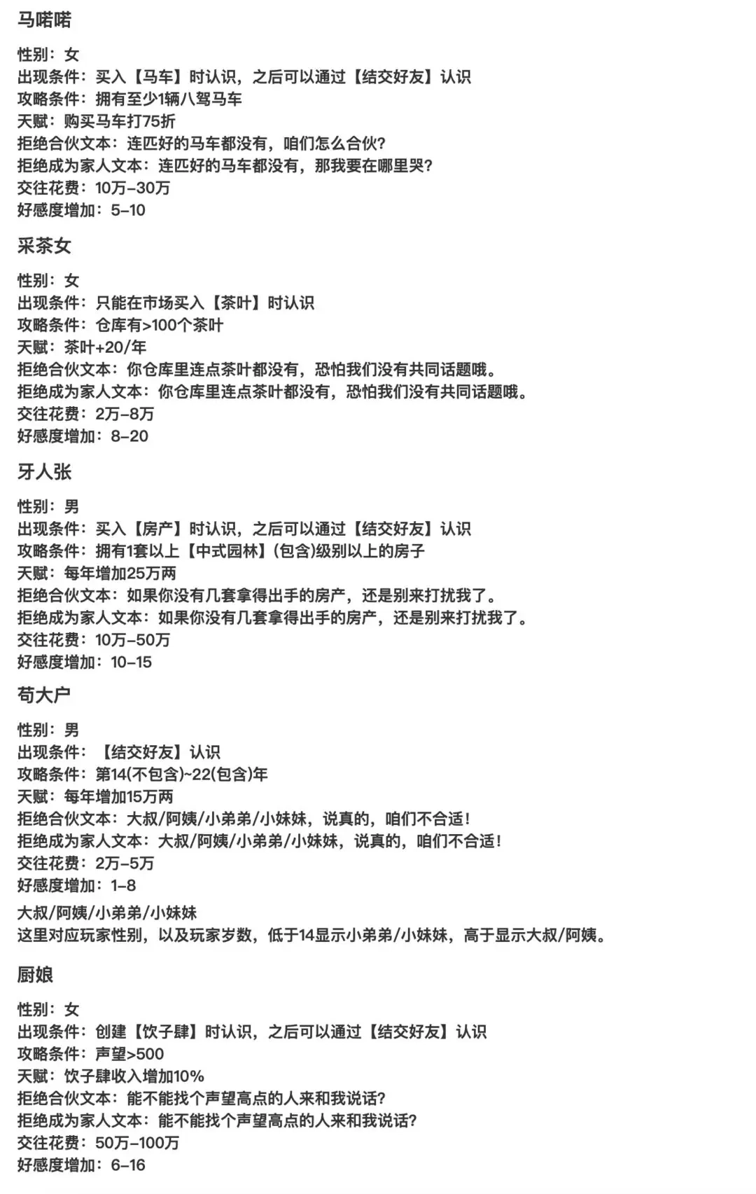 游戏里的大部分NPC都能提升好感度,而良好的人际关系是成功的关键所在。