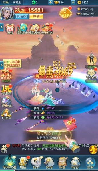 游戏里玩家就算不在线,修为也能持续提升、资源也能不断获取,每次登录都能领到大量资源,角色培养完全没压力,轻松享受纯粹极致的游戏快感。