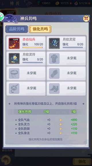 参与不周山玩法能够获取岩晶与神兵陨铁这两种道具,其中岩晶可用于兑换神兵,神兵陨铁则是强化神兵的材料。建议尽量让所有神兵同步开展强化操作,如此一来就能触发强化共鸣效果,从而额外提升属性加成。