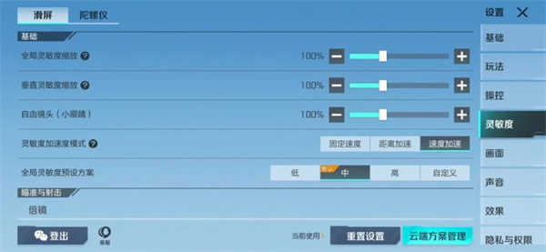 这个灵敏度设置,总共能分成滑屏设置与陀螺仪设置两部分,详细的设置情况如下: