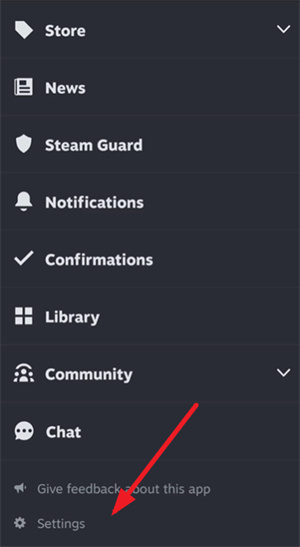 首先打开Steam应用,接着找到界面右下角的三条横线图标并点击,然后在弹出的菜单中选择下方的settings选项。