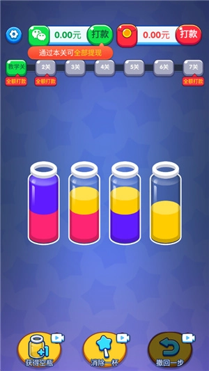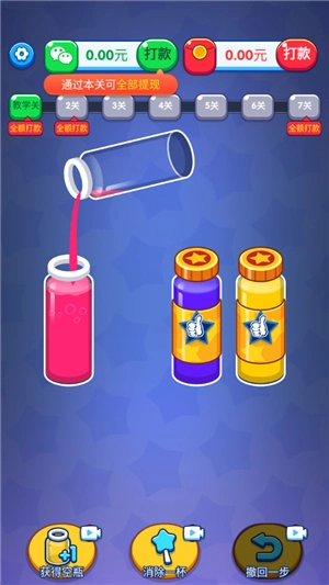 游戏里的关卡数量一直不少,你可以直接去尝试挑战,只要把相同颜色的水倒入同一个瓶子里,就能轻松消除,过关肯定没问题。