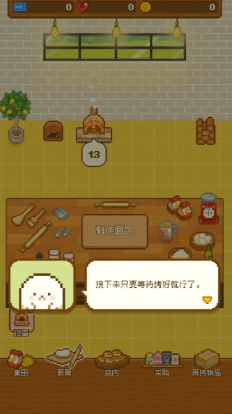 点击屏幕下方的厨房,准备制作面包。