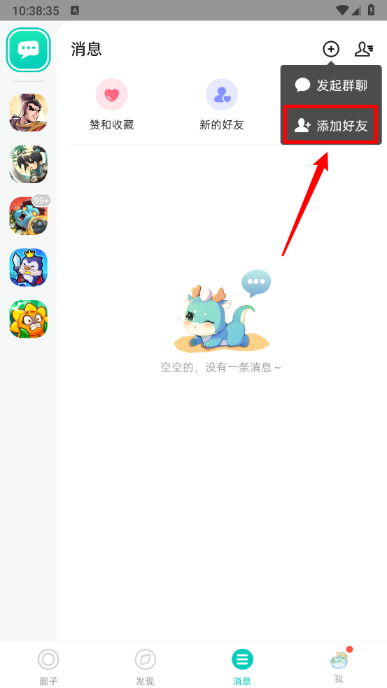 在消息板块点击右上角"+"号。