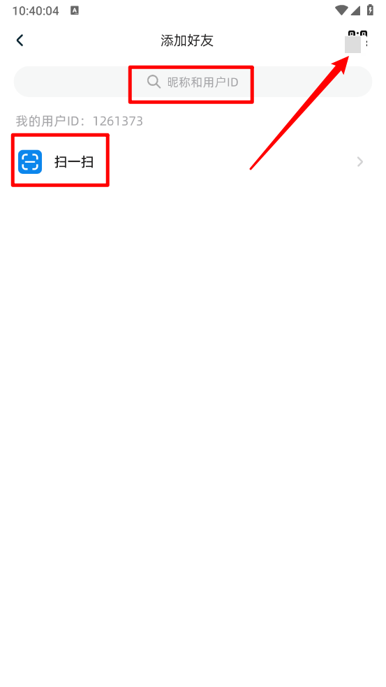 最后输入昵称与用户ID就能完成添加,也可以直接扫描右上角的二维码来添加。