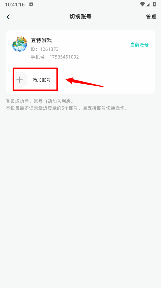进入后点击“添加账号”就能进行切换,需要留意的是,该设备最多可记录最近登录的5个账号,并且支持账号切换功能。
