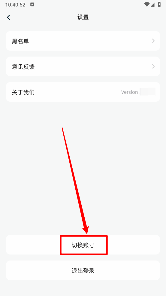 如图,在设置页面点击"切换账号"。
