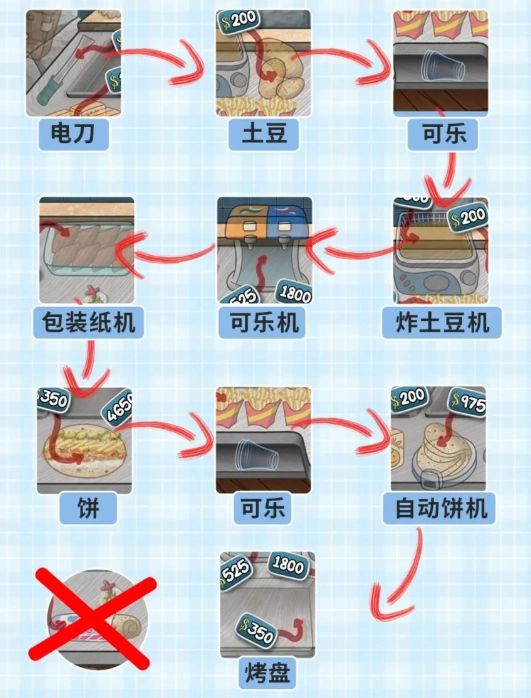 第一部分我们先对土豆、饼和刀具等进行升级,提升制作效率,这样你就能赚取更多金币了。