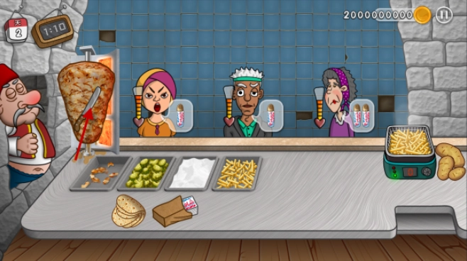 用各式各样的食材去创造出全新风味的沙威玛吧!每一天你都会碰到形形色色的顾客,其中还包括想蹭吃白食的人。