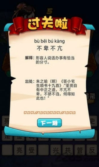 在游戏里轻松闯过关卡挑战,还能了解成语背后的典故,更深入地传承中华传统文化的精髓,感兴趣的玩家不妨来体验一番!
