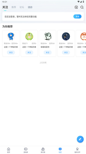 点击右上角的关注按钮即可成功关注该用户,不过需要玩家先完成登录操作。