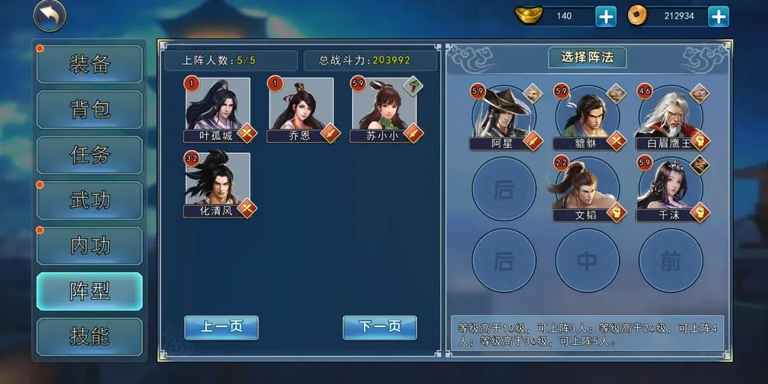 60级18万战力阶段,前阵型用023或者320效果很不错。遇到一些特殊情况时,则需要调整阵型。