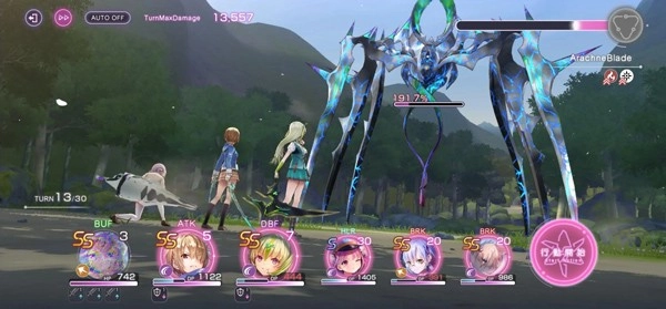 游戏采用回合制闯关玩法,玩家需要通过点击角色来向敌人发起攻击,当能量条攒满后还能释放强力技能,以此对敌人造成巨额伤害。